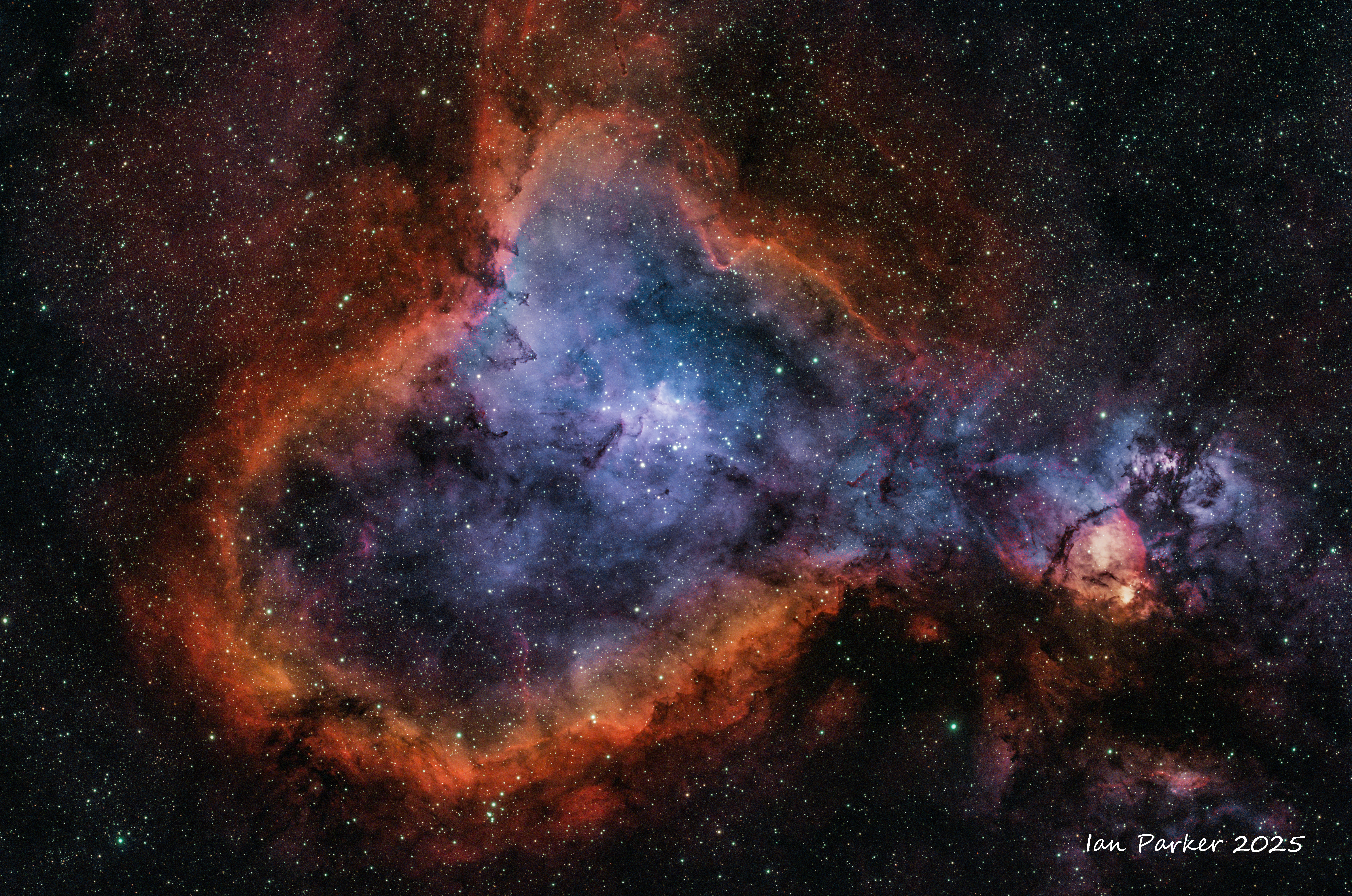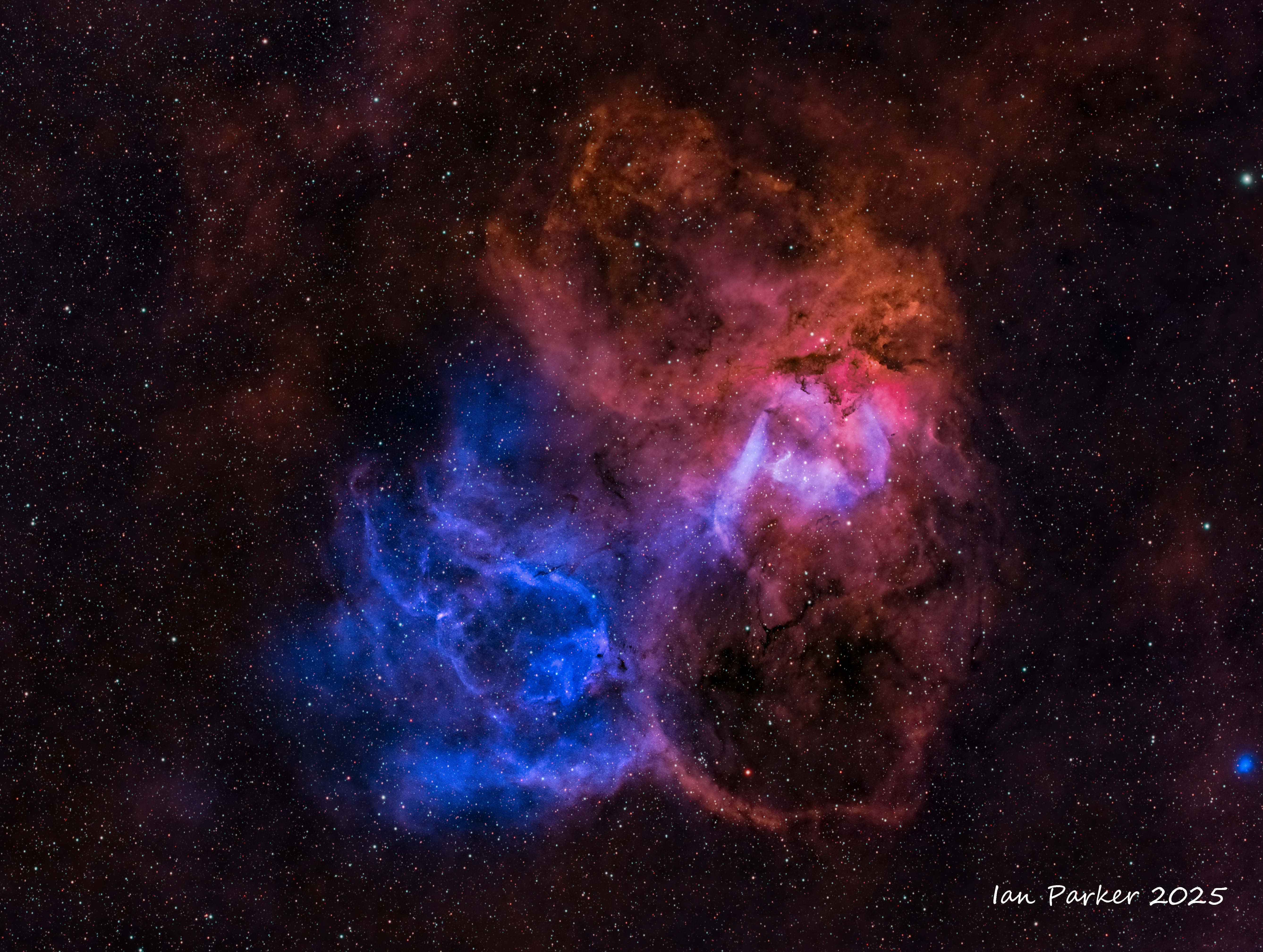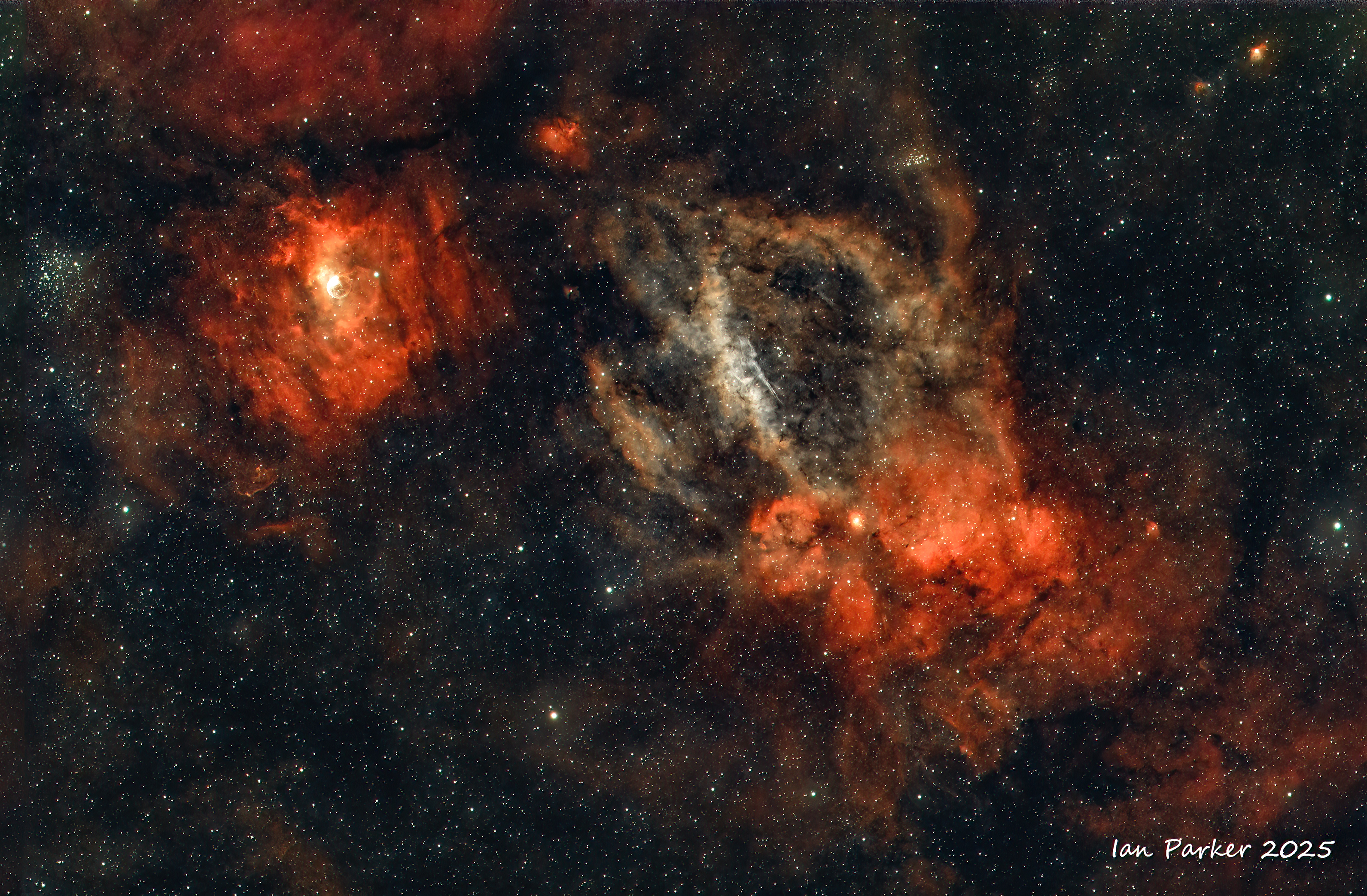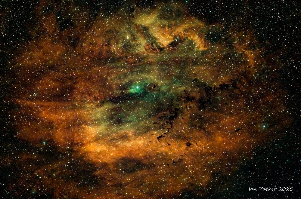 OSC no filter 6hrs at Bortle 2 site in Mojave Desert with added Ha using dual narrowband (7 nm Ha) filiter, 3 hrs in our driveway (Bortle 9).