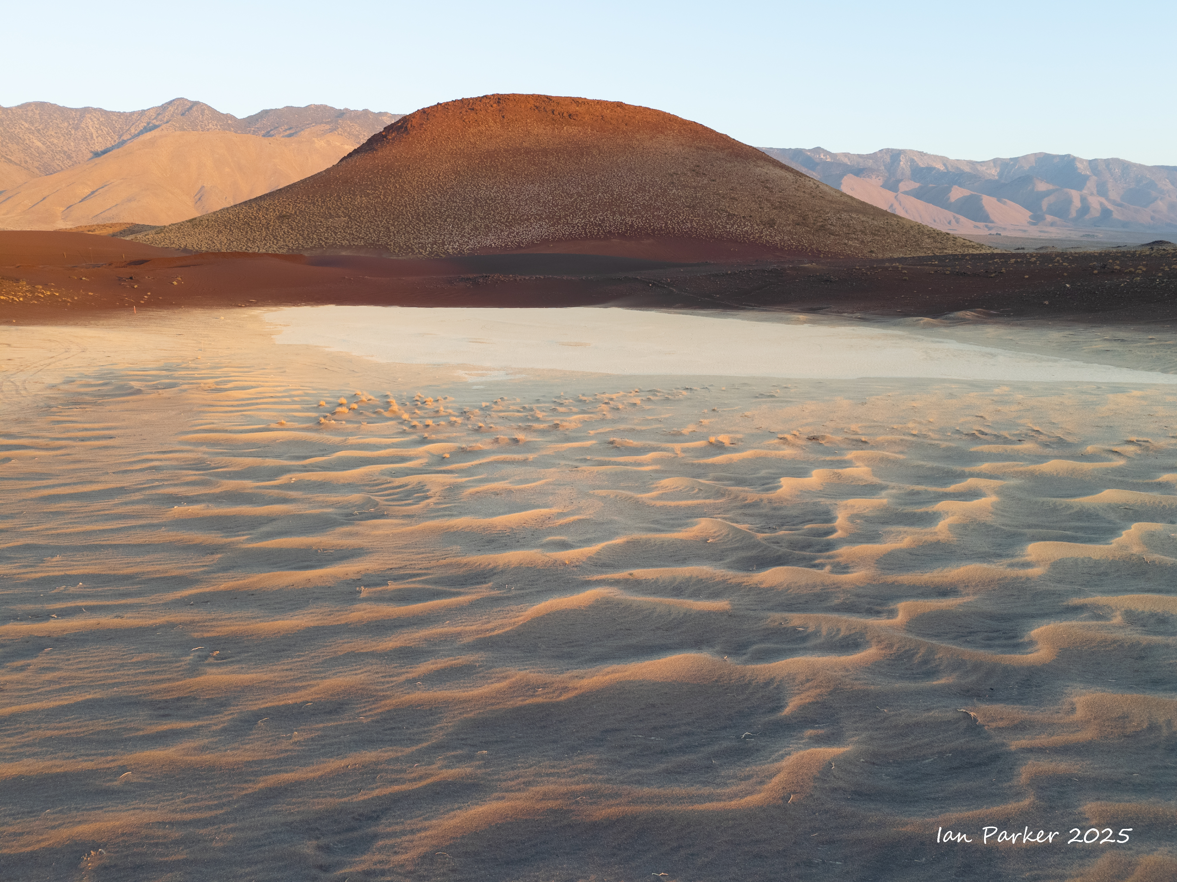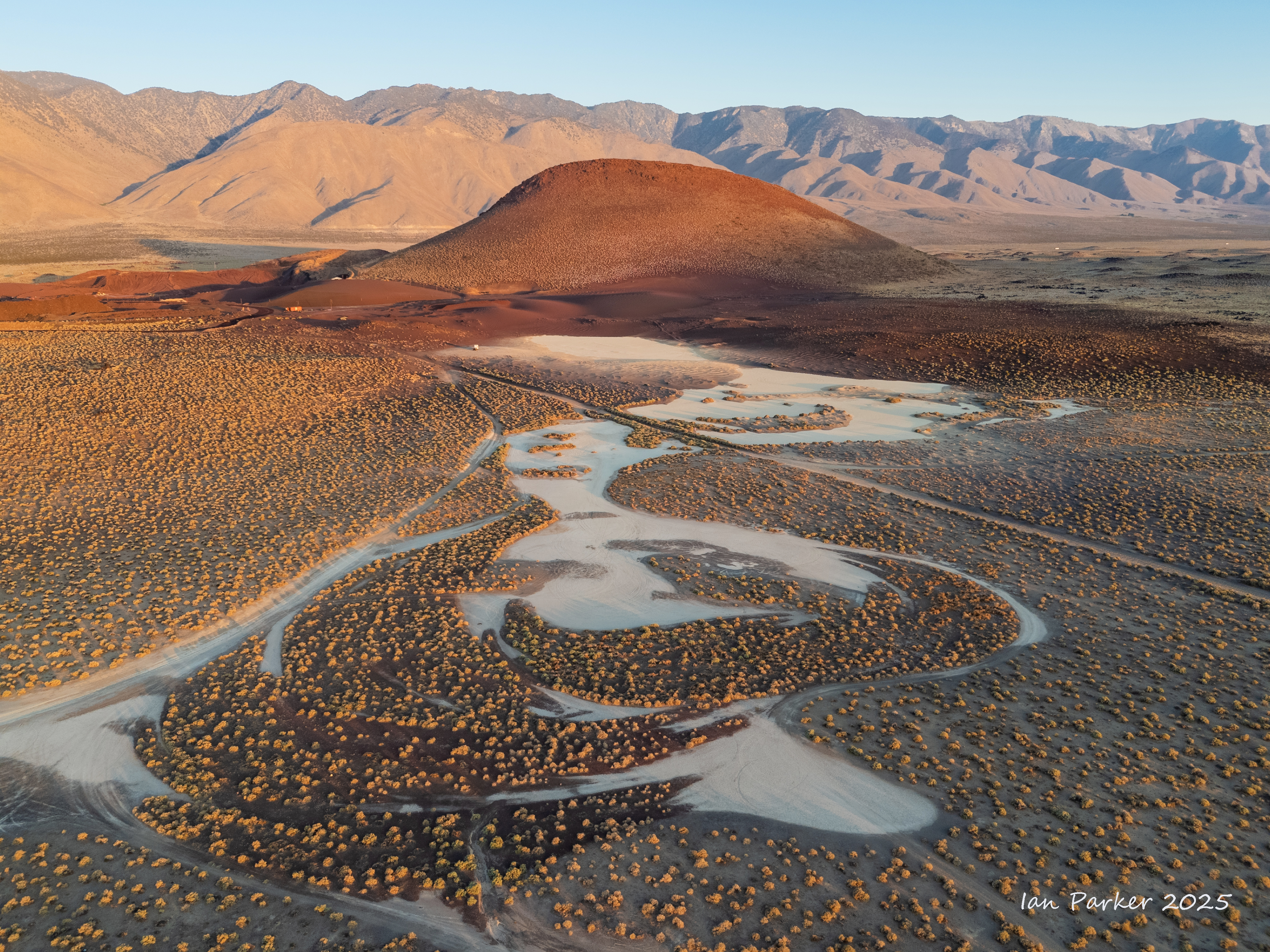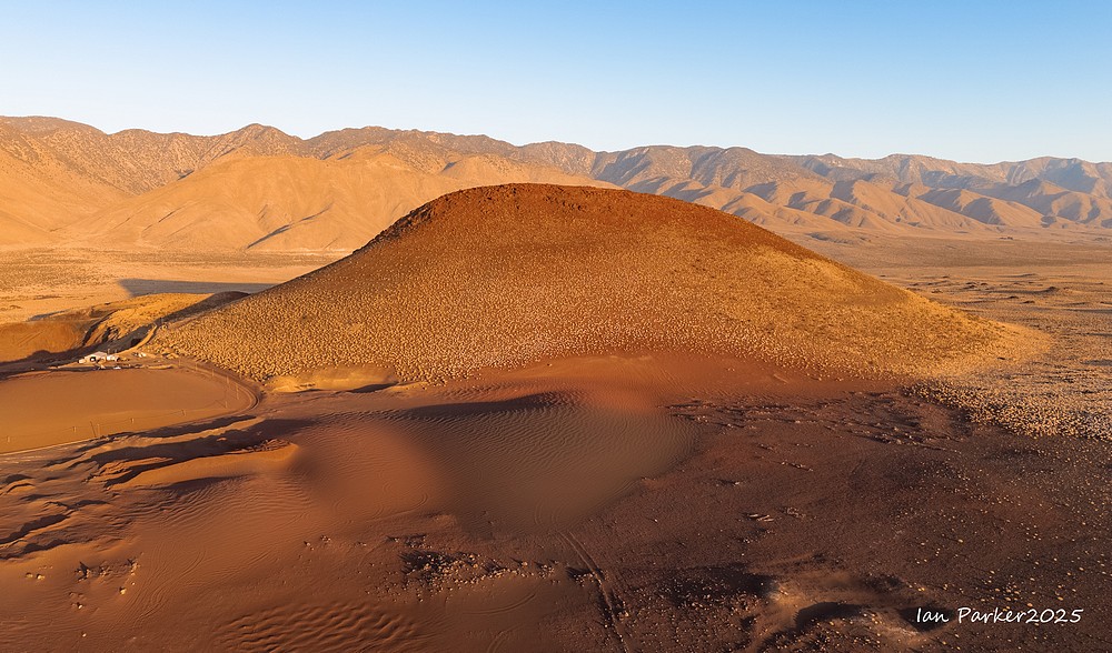Finally, as the sun’s rays first illuminated the crater, I swung the drone around to the east, to align it with the shadow cast toward the Sierra Nevada mountains.