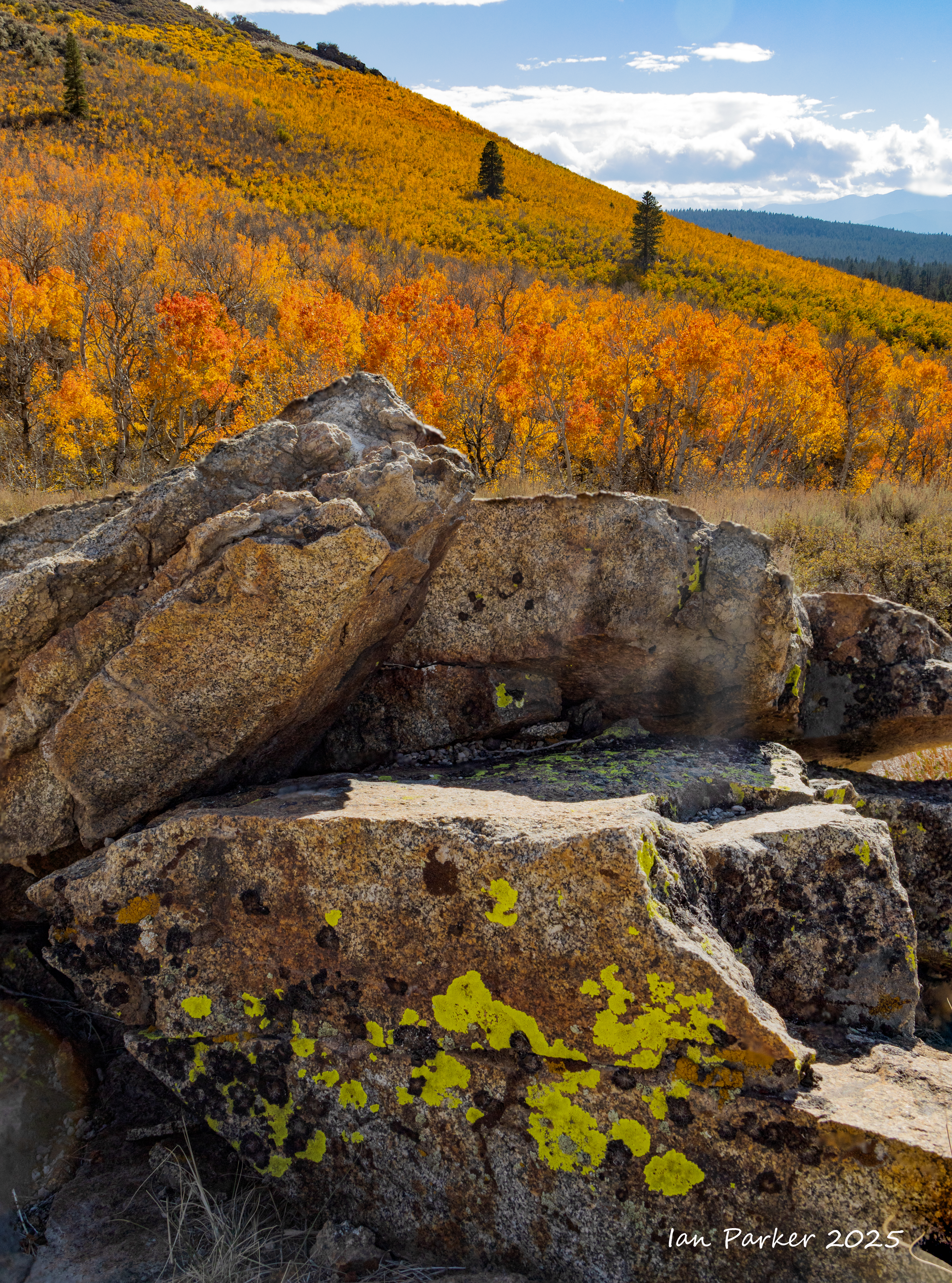 September 23-30; A roundtrip drive along highway 395 to visit our son and family in Redding - with stops outbound and on the return to photograph fall colors in the Eastern Sierras.